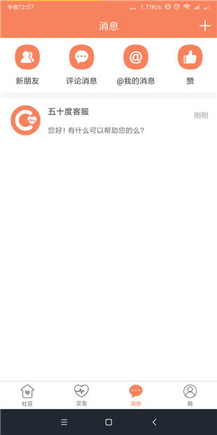 在消息模块中,可以查看到自己的新朋友列表记录,他人评论记录,@我的信息,他人点赞的记录,同时用户也可以看到自己的聊天记录,进行发起聊天,新建群组等操作