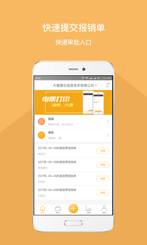 我的报销app是专为企业打造的一款智能报销软件,该软件集费控、预算、提单、审批、发票管理于一体,用户可以通过它进行快速报销操作,免去繁杂的审批流程,从而提高企业工作效率。