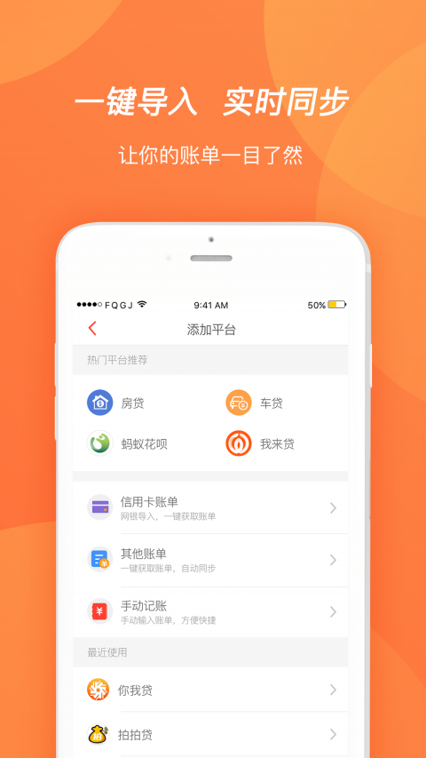 智能:智能负债管理,未来支出准确分析,到期自动提醒,再多负债也能hold住。高效:信用卡、网贷账单一键导入,自动同步,同时支持车贷房贷手动记账,账单再多也不怕