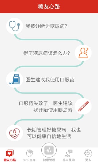 【】简单全面呈现必备知识,掌握健康关键。【】每天定时提醒您用药打针,血糖更少波动。