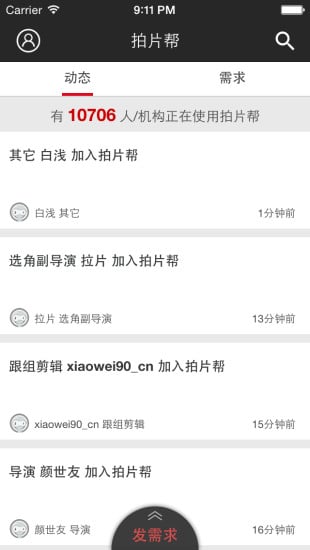 拍片帮app是一款专为拍片的用户所提供的影视拍摄辅助应用。该软件可提供灯光师、服装、演员、场地以及其他拍片的信息的查找或发布,帮助用户解决拍片过程中发生的多种问题。