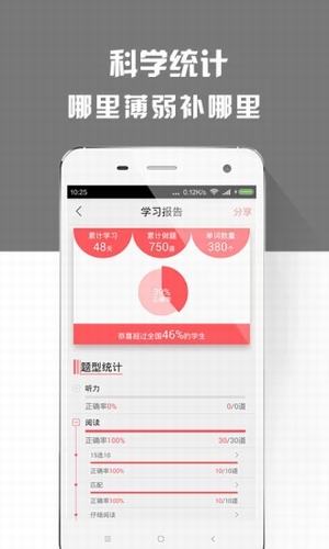 4.做题,你所做的每一道题她都帮你记录,智能分析生成学习报告,呈现做题统计,给你学习建议,听力,语法,四级,六级,考研英语的问题都能知道