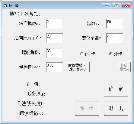 1.可以计算圆柱齿轮M值;2.可以计算圆柱齿已知公法线长与弧厚度;