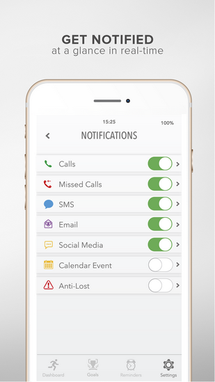9.选择你想接收的信息提醒(来电,SMS, 邮件,日历事件,社交媒体)设置日常提醒