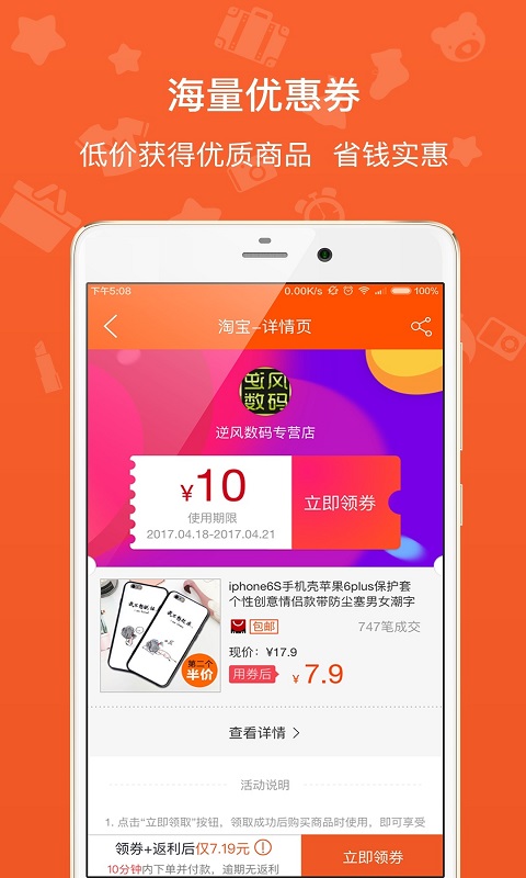 五淘app是一款为中小买家提供淘宝天猫隐藏内部优惠券的软件,领券购买省钱90%还能返佣,每日更新10万种商品,低至1折再包邮,收录商品均经过人工审核。服装鞋帽,居家文体,箱包配饰,数码母婴,应有尽有。五淘值得你拥有。【软件特点】