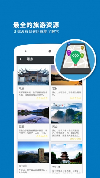 听游天下——黄山导游:专业的智能语音导游系统,专为喜欢自由行的旅行爱好者而设计。携手科大讯飞,带给您独特的安徽黄山印象。黄山市古称新安、徽州。位于安徽省最南端。市内黄山,千峰竞秀,是安徽旅游的标志,是中国十大风景名胜中唯一的山岳风光。为三山五岳中三山之一,集中国各大名山的美景于一身,尤其以奇松、怪石、云海、温泉“四绝”著称,是大自然造化中的奇迹,历来享有“五岳归来不看山,黄山归来不看岳”的美誉。