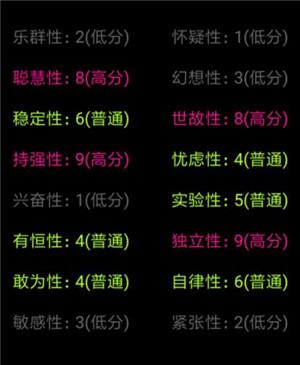 游戏里有很多制作者主观的想法 而且各种类型的测试范围很局限 有点儿好奇样本来源群体类型……好了又扯远了 结果也会起到心理暗示