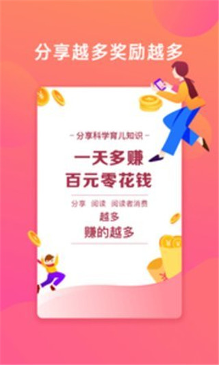 我们的目的是鼓励那些有爱心、善分享、能推荐的宝妈与奶爸们,分享他们自己的育儿经验和乐观的生活态度,成为自己朋友圈的达人。从而获得各种奖励与成长。我们对用户的主动分享,以及分享后带来的阅读量,都会有现金奖励!【软件特点】