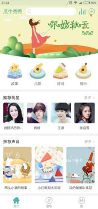 瓜牛秀秀app是原宝宝声音秀的升级版本,一个宝宝们的声音分享社区,唱歌,交朋友,给喜欢的朋友写信,瓜牛秀秀app让你可以和你的宝宝一起玩转各种变声,推荐了网络热搜明星声音合集,可以免费体验不同的声效!还可以在线听儿歌、听故事,读诗词等等等,打造最完美的亲子互动社区!【软件特点】
