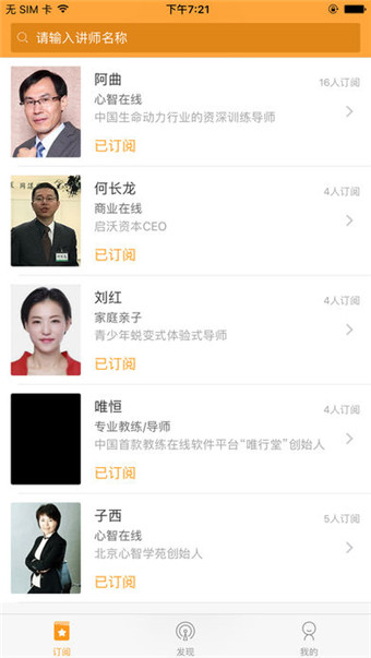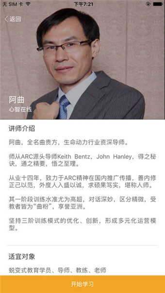 该APP让线下的名师荟聚线上,资深蜕变式教育导师带你走向人生的巅峰。它分为四大模块:心智在线、商业在线、青少年心智教育、专业教练/导师。这四大模块深受各个不同需要的人们喜爱。今天,启创君先来为大家介绍两位心智在线资深导师的课程。