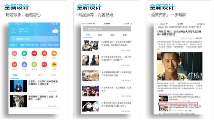 神马浏览,懂你所想。高速浏览,为您一网打尽。影视资讯,流畅观看,无需安装第三方插件,直接播放。热点资讯,一触即达。屏蔽广告,上网无忧。安全隐私保护,更快更安全。【软件特点】