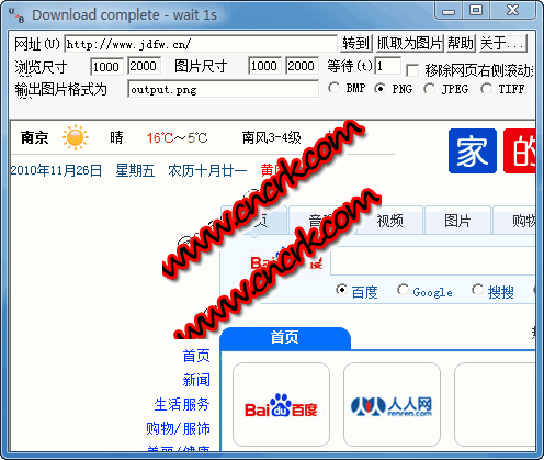 url2bmp这个免费软件让你抓完整的网页画面,包括超出屏幕范围的超长延伸的网页画面,支持的格式有:jpg, bmp, png, 以及 tiff 格式;也支持命令列模式,绿色软件直接运行即可。