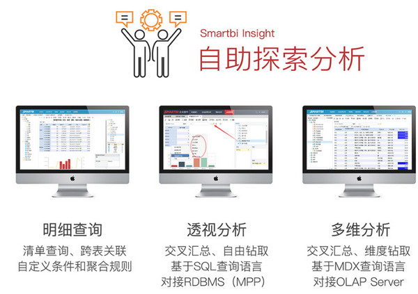 企业用户都希望对业务、管理数据进行多维度分析,SmartbiInsight充分满足此类OLAP需求,无论客户的数据环境为多维数据库还是关系数据库,都可以提供相应的功能。其中xQuery采用类Excel透视表的界面设计,让自助分析更加落地。
