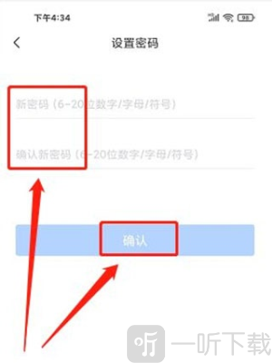 4. 分别输入新密码和确认密码,随后点击“确认”,如此便能完成密码设置。