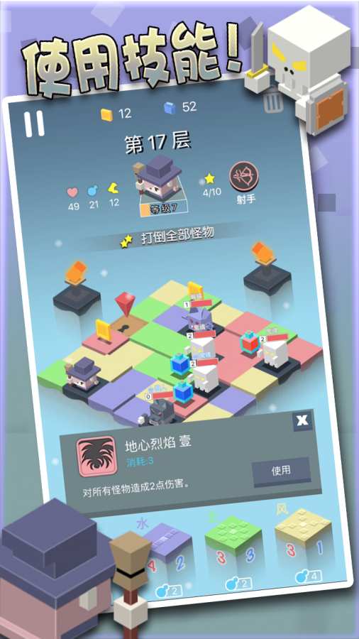 游戏把Rouguelike和冒险解谜有机的结合了在一起。在游戏中,玩家不需要高超的操作,极限的手速,只需要用你的大脑,精确地计算双方的攻防,为我们的勇者制定一条移动的路线,然后就可以松开双手,开始观看我们勇者的表演。避开攻击、消灭怪物、拾取道具,一切都尽在你掌握之中。