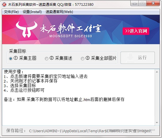 木石速卖通采集器是一款由木石软件工作室开发的网站采集工具,采集速卖通商品的图片,方便快捷,支持批量采集!自动命名文件夹!【软件特点】