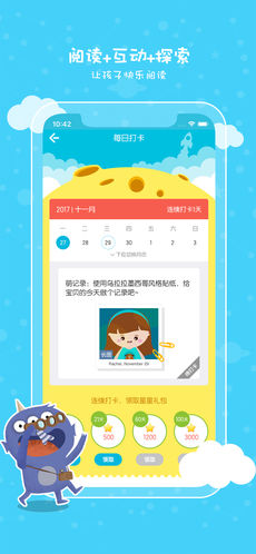 故事飞船是一个培养儿童对阅读热爱、启发想象力的线上互动故事图书馆,平均每三天更新一个故事,每年提供至少100个精品绘本故事、益智游戏,并将有趣的游戏、互动加入到故事中。每个故事都配有专业播音员优美、动听、趣味盎然的朗读,让孩子在美好的体验中迅速提高词汇量和阅读能力。