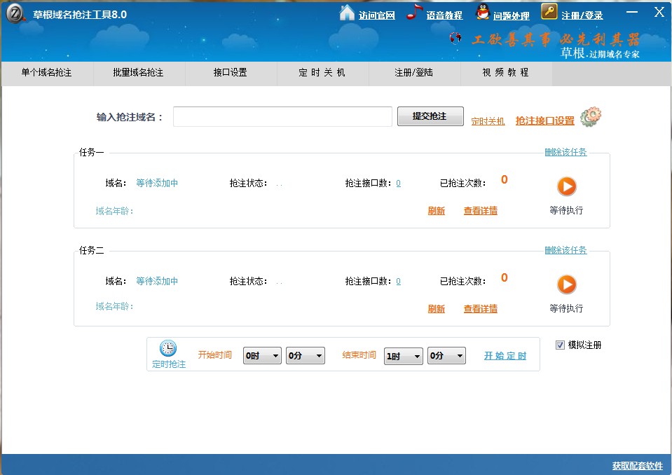 二:批量抢注任务(每次可添加千个域名进行抢注)