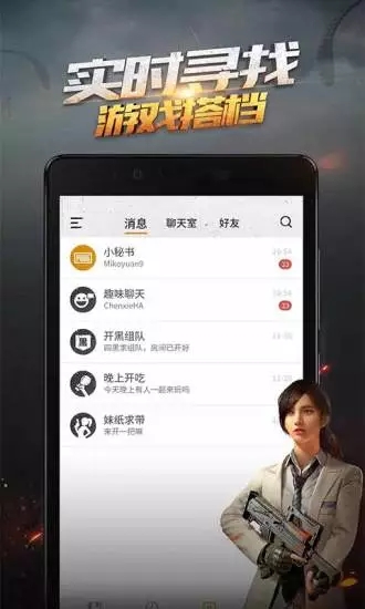 游戏新闻一网打尽------热点新闻、萌新攻略、搞笑视频、同人段子、大神专栏,你想要的一切精彩,这里看个够!实时寻找游戏搭档------找“鸡”友,带妹子,万人同场聊天室跨平台无缝交流,在这里抱紧大腿,大吉大利,天天吃鸡!