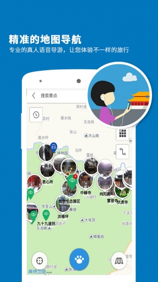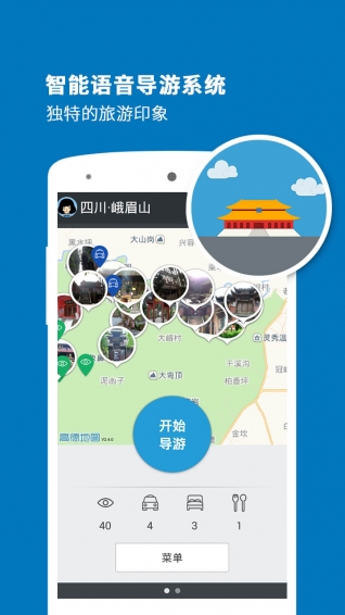 峨眉山导游app是一个专业的智能语音导游系统,专门为喜欢自由行的旅行爱好者而设计。峨眉山导游app是将语音导游、门票信息、旅游攻略、景点美图、旅游足迹等全面集中展现。 峨眉山导游app像一个经验丰富的导游,当您进入景区时,及时地向您推荐您当前的游览线路及沿途景点;当您漫步在景区时,峨眉山导游能根据当前您所处的景点位置,为您提供生动的语音解说及详尽的图文介绍;当您处在景区外时,峨眉山导游是一本妙趣横生的百科全书,图文并茂地向您展示着景区深邃的文化内涵和丰富的历史积淀,让您体验到景区身临其境的愉悦感。