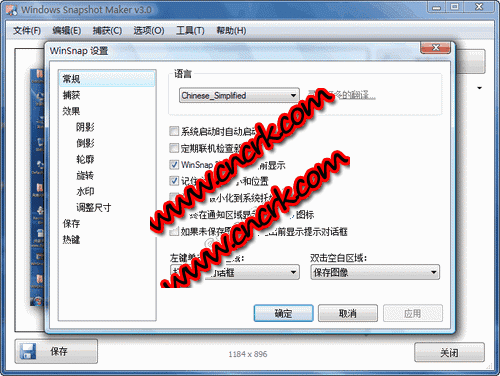 WinSnap V3.5.5 32Bit 完全汉化绿色特别版 winsnap 是一款完全免费的屏幕捕获软件,能够让您得心应手地捕获到需要的屏幕截图。捕捉图像方式灵活,主要可以捕捉整个屏幕、活动窗口、选定区域等,图像输出方式多样,主要包括文件、剪贴板、和邮件。软件具有设置捕捉前延时、自定义捕捉热键、图像文件自动按时间或模板命名、捕捉成功声音提示、预览捕捉图片、图像打印、图像水印、图像反色、图像翻转、图像旋转等功能。捕捉到的图像能够以保存图像文件、复制到剪贴板等多种方式输出