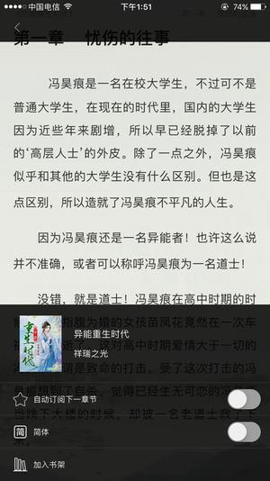 4、原生态的阅读体验,夜间模式,自动阅读,随意换背景和字体大小,让您畅快阅读!