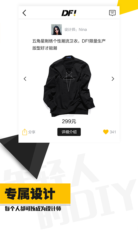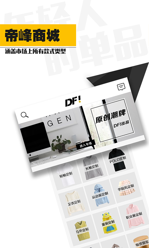 帝峰衫国是浙江帝峰衫国信息科技有限公司旗下品牌,是班服定制的云服务平台。帝峰衫国成立于2011年9月9日,于2014年完成帝峰衫国的品牌升级,旗下拥有涵盖天猫旗舰店、淘宝企业店、设计公司、印花公司、制衣公司、仓储公司、配送公司等完备的服务系统,是中国班服定制的领跑者,已累计服务学生人群500万人,企业客户3000余家。帝峰衫国战略升级,推出全新app,为您提供班服、情侣服、亲子服、原创潮牌、校园周边纪念品的全新购物及服务体验。【软件特色】