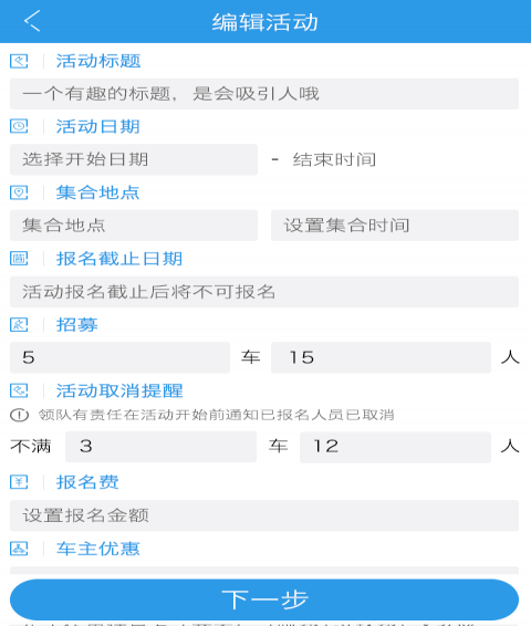活动发布:领队可以再活动发布中根据儿童身高设置优惠金额。