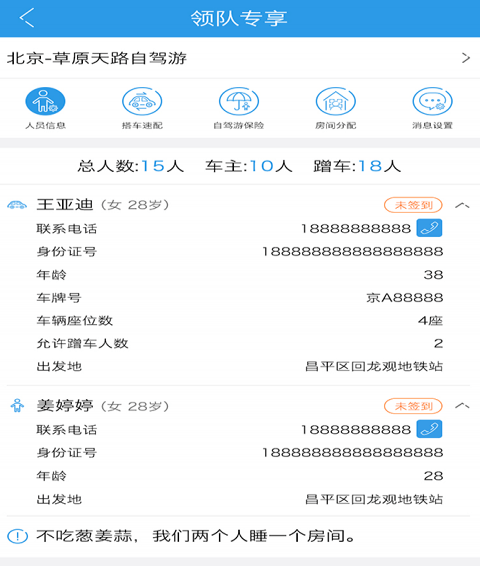 领队工具:领队可以在报名信息中查看报名人员的个人信息和支付金额。
