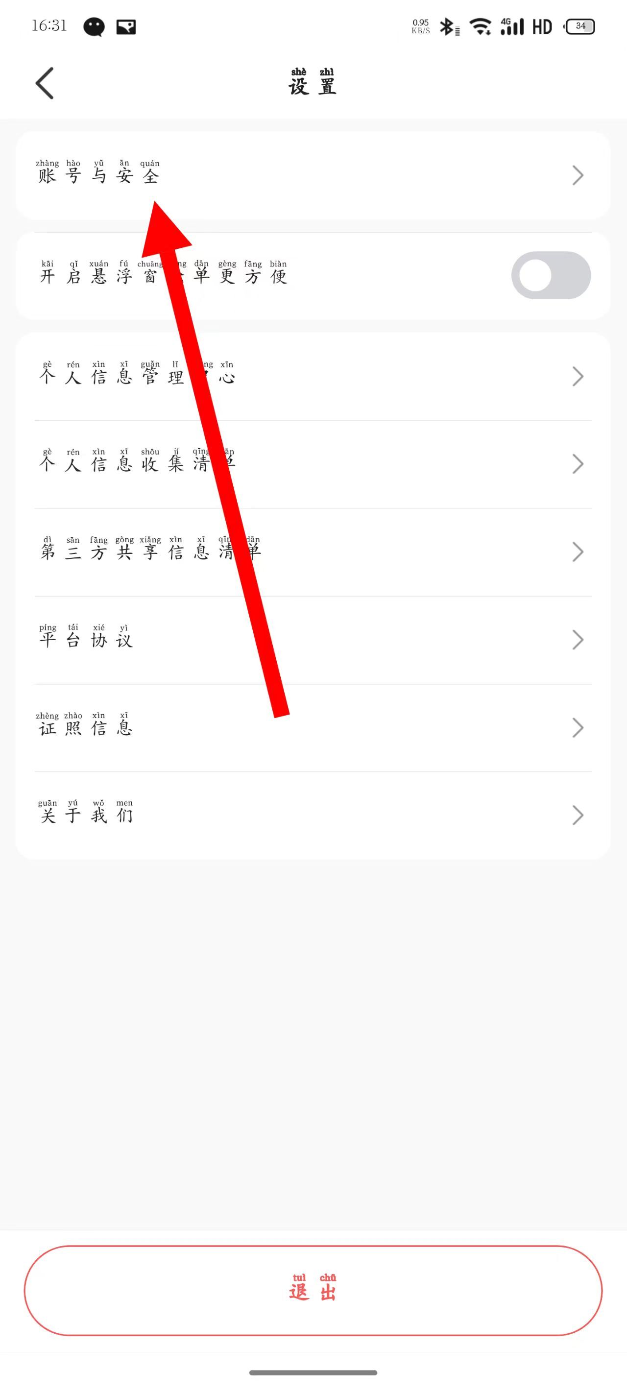 3、当进入设置页面后,点击“账号与安全”选项。