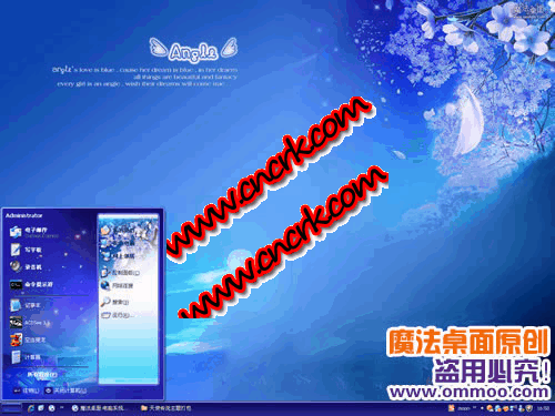 魔法桌面原创xp、vista、windows7通用版天使传说桌面主题用梦幻的蓝色风景做壁纸,一树樱花、几株魔芋,若隐若现的灵光,充满了梦幻神秘的气氛