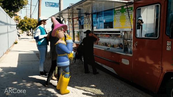 简单说来,ARcore可以在现实世界中添加任何虚拟物体,并且这些物体能和空间、动作甚至是光影的变化产生互动。和ARkit一样,ARcore不需要手机上新增任何摄像头和传感器,凭借摄像头、陀螺仪和其他手机本来就具备的传感器就能完成AR功能