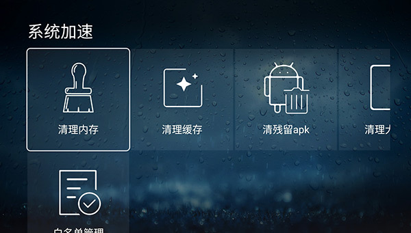 清除缓存垃圾,管理后台应用,助你揪出电视变慢的元凶。在首页按下返回键,一键唤出大刀卫士,疯狂斩杀后台进程,为你释放内存空间,加快运行速度。