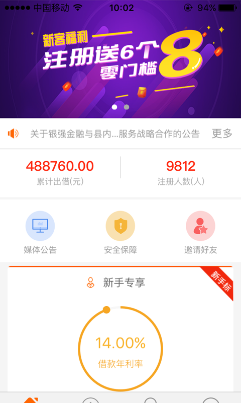 【新手专享】注册即可领取6个8元现金红包。新用户专享红包、签到红包、邀请红包、各种加息活动,高额理财红包,让你稳健理财。