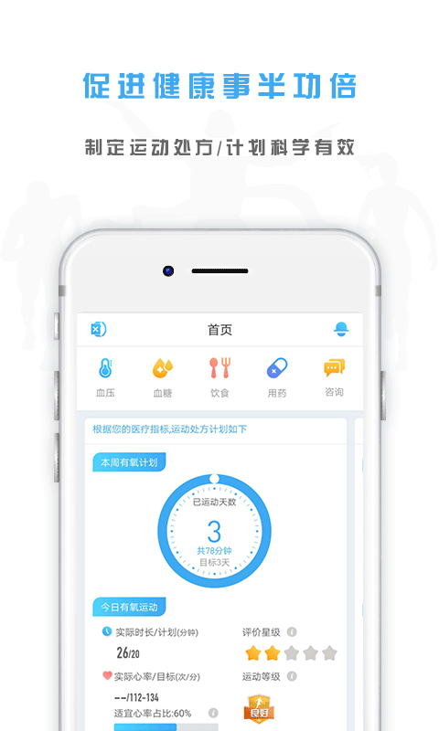 ——微动提供健康数据监测(心率、血压、血糖)、健康提醒功能,同时提供日志反馈与建议服务,保障用户的运动安全和锻炼效果的顺利实现。