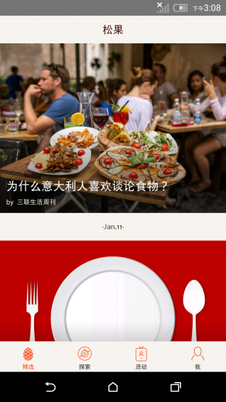 松果生活app是由《三联生活周刊》打造的一个精致生活方式聚合平台。汇聚各式达人,精选阅读内容,发起线下活动。松果生活app,一万个生活家。【软件特色】