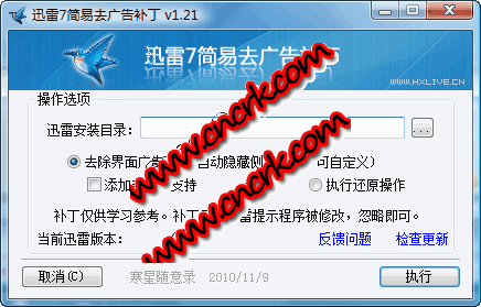 迅雷7简易去广告补丁 V1.21 简体中文绿色免费版 迅雷去广告补丁更新日志: