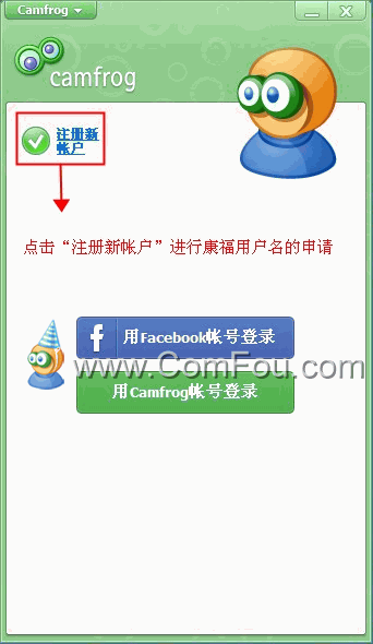 第二步:点击康福软件顶部的“注册新帐户”选项来完成注册,具体位置如下图所示: