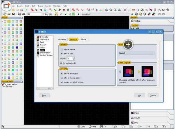 性能创建一个原理图设计是一个广泛的任务规划软件应用。这个布局编辑器包括schematiceditor也可以阅读普通原理图/表格式。原理图和布局联系。这将允许一个简单的布局创建无限制免费定制设计。一个表可以从版图提取内置或外部布局与原理图(LVS)。也可用于模拟电路。
