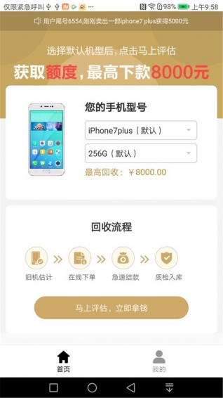 天天回收app是一款评估手机立即拿钱的软件平台。天天回收app专注于手机、平板电脑、笔记本、数码相机等电子数码产品的回收服务。天天回收是二手手机回收软件,为用户提供变废为宝的有效渠道,废旧手机,放在客户那里,用不上,占地方,不如二手手机回收换点小钱。