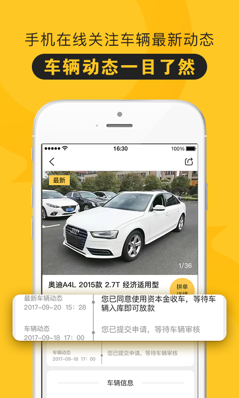 收车&卖车线上经营管理工具,经纪人通过APP管理车源交易,管理个人收益;