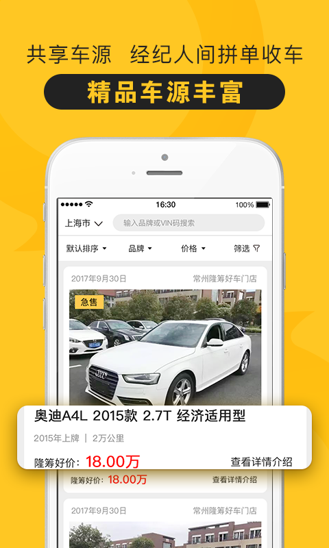 经纪人发布同城车源,线上曝光,提供串货;