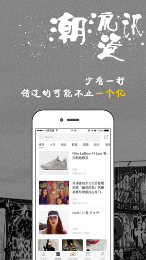 潮流资讯第一时间网罗全网潮流热点,每天都有海量的资讯。根据用户兴趣,归纳12个分类:潮流、鞋履、视频、运动、滑板、娱乐、生活、幽默、正妹、音乐、科技、亚文化。在EYEE蜂潮可以快速了解和学习行业潮流资讯,时刻掌握潮流趋势。