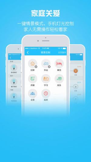 4、家庭关爱-一键情景模式、手机灯光控制,加入无需操作轻松看家