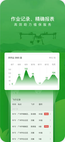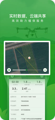 大疆农业服务平台可精确记录多种模式下的作业数据,当前航线、作业进度等详细信息可通过平台进行实时查看,远程管理更加轻松。