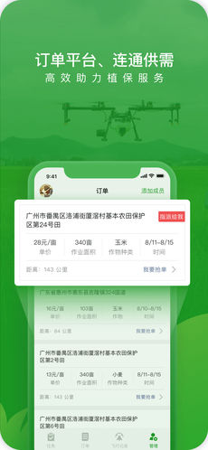 植保机构通过平台接洽订单,无需广寻客户达成交易。紧密连接供求双方,解决以往植保作业双方信息不对称问题,让意向洽谈顺利推进。