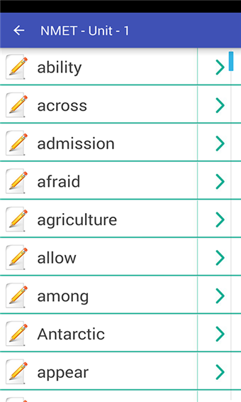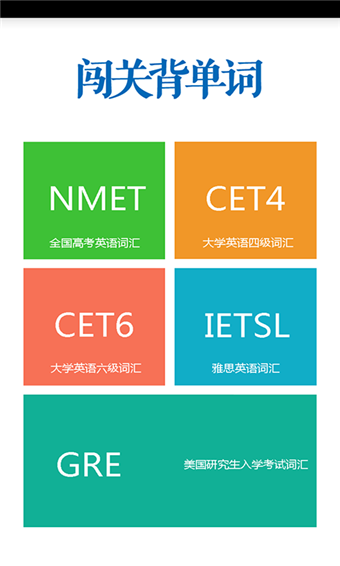 各种考试相关词汇,包括大学四六级、考研、GRE、托福、雅思、商务英语、新概念、GMAT、SAT等20多个词库,每个词库都根据词频进行了顺序调整,整个学习过程从易到难。对于没有考试目标的用户,我们提供词频高的1万多个单词进行学习。