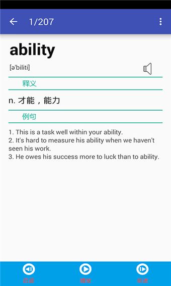 专业的数据来源我们的关卡设计综合了美国和欧洲权威机构统计的口语和书面词频数据,采用标准谷歌美式英语发音, 让你短时间内记住有用的单词。