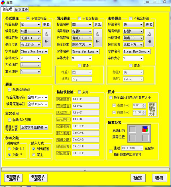 ThesesAssistDrawer可快速插入对题注、标题序号、参考文献及页码的交叉引用。有了该程序的帮助,当您需要插入交叉引用时,您不必再打开“交叉引用”对话框去繁琐地选择组合框和列表框中的项目,您只需要使用“记录引用”和“插入引用”按钮来完成操作。另外,勾选设置中的“自动插入引用”选项时,您只需在对象上单击鼠标左键,然后单击按钮来插入相应的交叉引用。