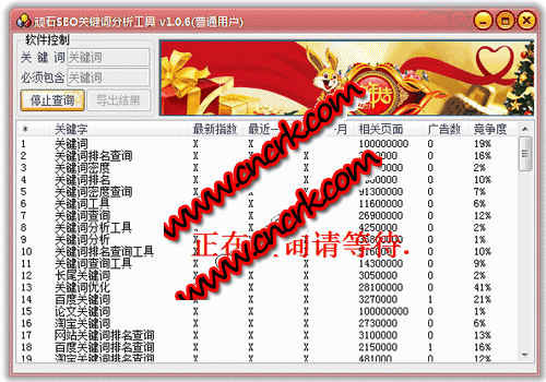 顽石SEO关键词分析工具 V106 简体中文绿色免费版 顽石seo关键词分析工具主要用于获取某个词的相关词及长尾词,然后分析百度指数、关键词竞争度、及收录百度收录页面数。